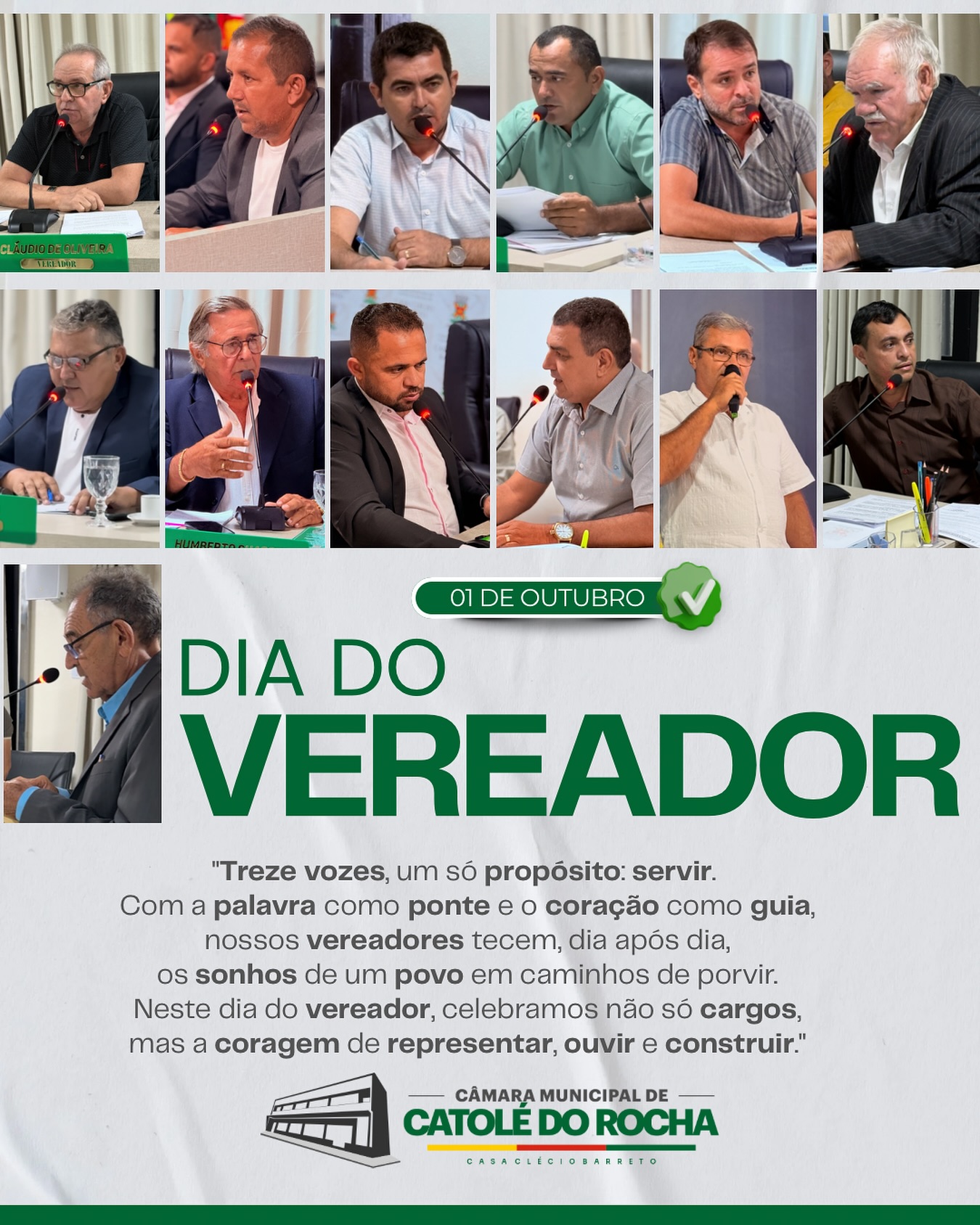 “Com a palavra como ponte e o coração como guia, nossos vereadores tecem, dia após dia, os sonhos de um povo em caminhos de porvir. Neste dia do vereador, celebramos não só cargos, mas a coragem de representar, ouvir e construir.”